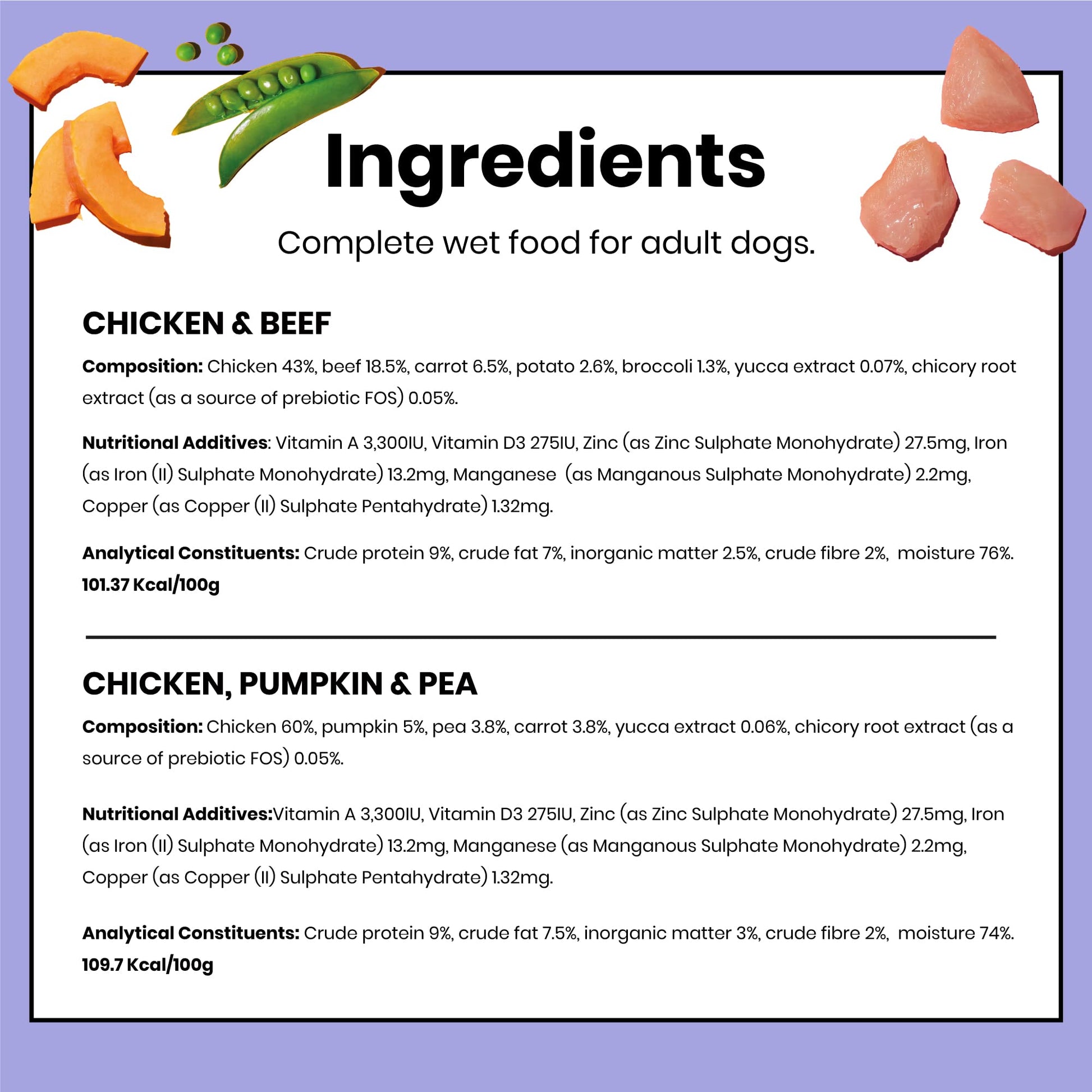 - A 12 pack assortment of wet dog food flavours to find the best for your dog.